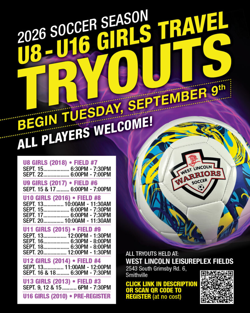 The West Lincoln Youth Soccer Club’s travel program is aimed at players ages U8+ who have the skills and commitment to play at a higher level.